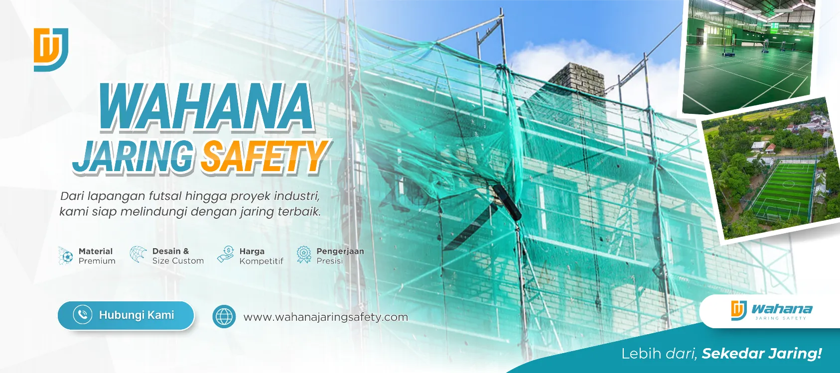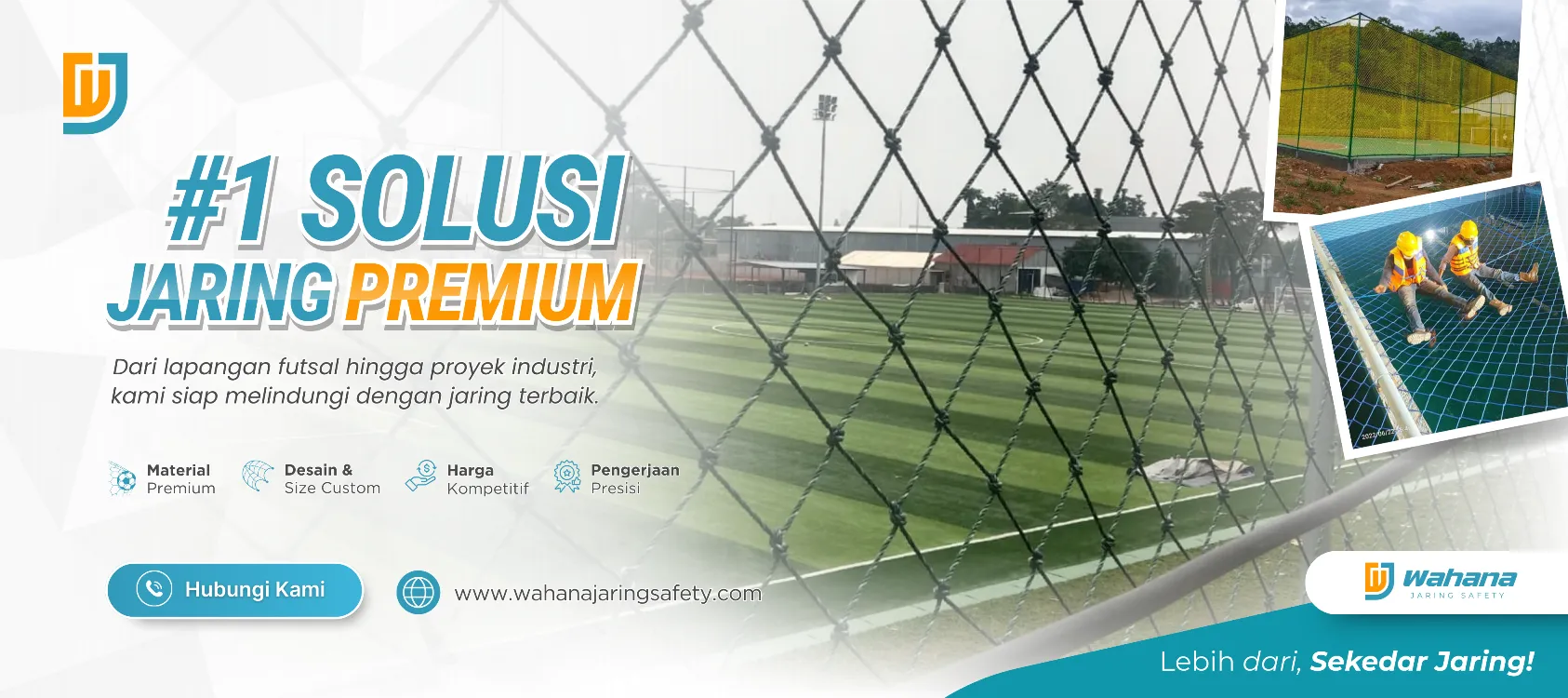 Wahana Jaring Safety adalah penyedia solusi pembuatan dan pemasangan berbagai jenis jaring pengaman dan jaring olahraga dengan kualitas terbaik. Kami berlokasi di Desa Banjarasari, Sukatani, dan melayani kebutuhan jaring untuk berbagai keperluan seperti jaring futsal, minisoocer, jaring safety bangunan, lapangan olahraga, hingga jaring custom sesuai permintaan Anda.